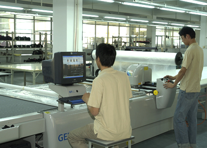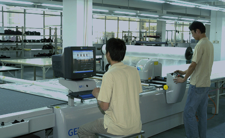 公司采用CAD計算機輔助排料系統(tǒng)進(jìn)行排料,該系統(tǒng)準(zhǔn)確、高效。鋪料機代替手工鋪料的優(yōu)點使鋪料均勻、整齊、松緊適宜、降低工人勞動強度。